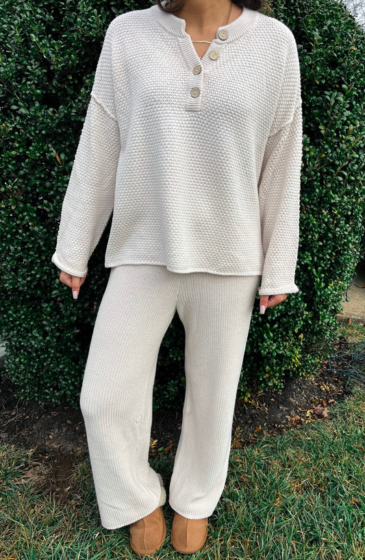 Sold outWaffle Knit Wide Leg Pants - Almond